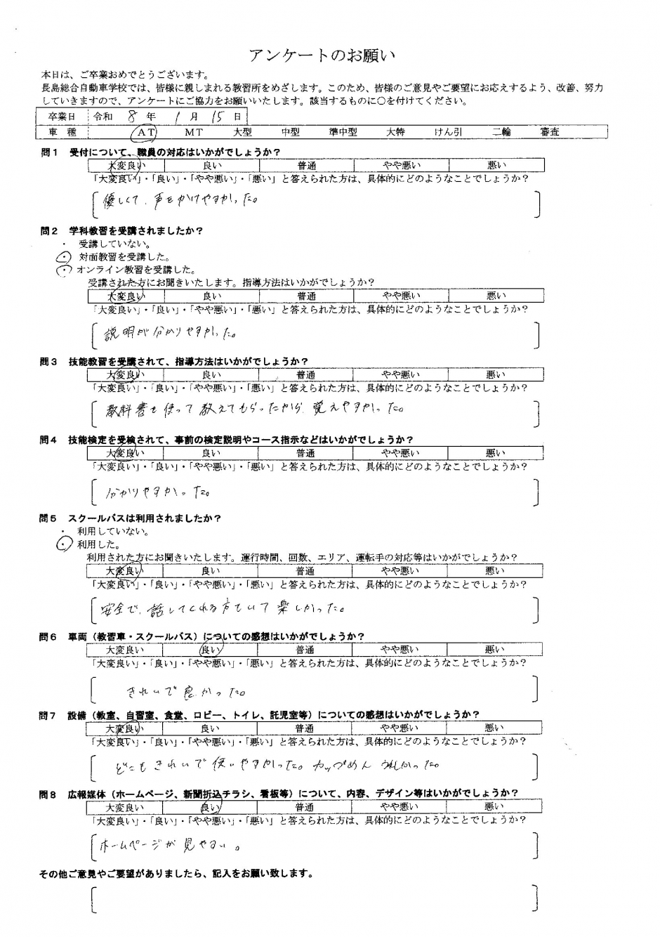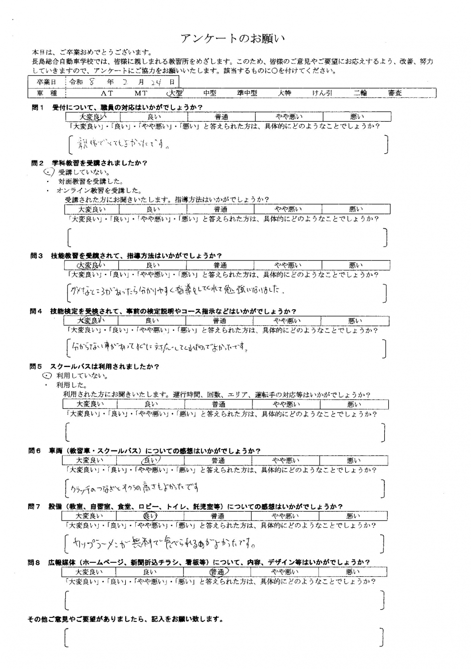 卒業生アンケート
