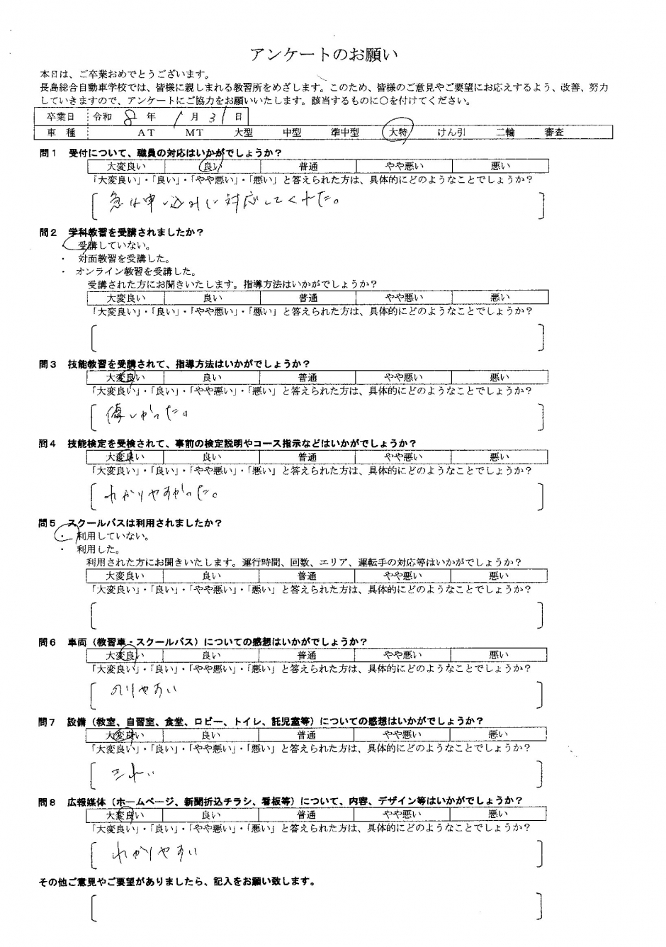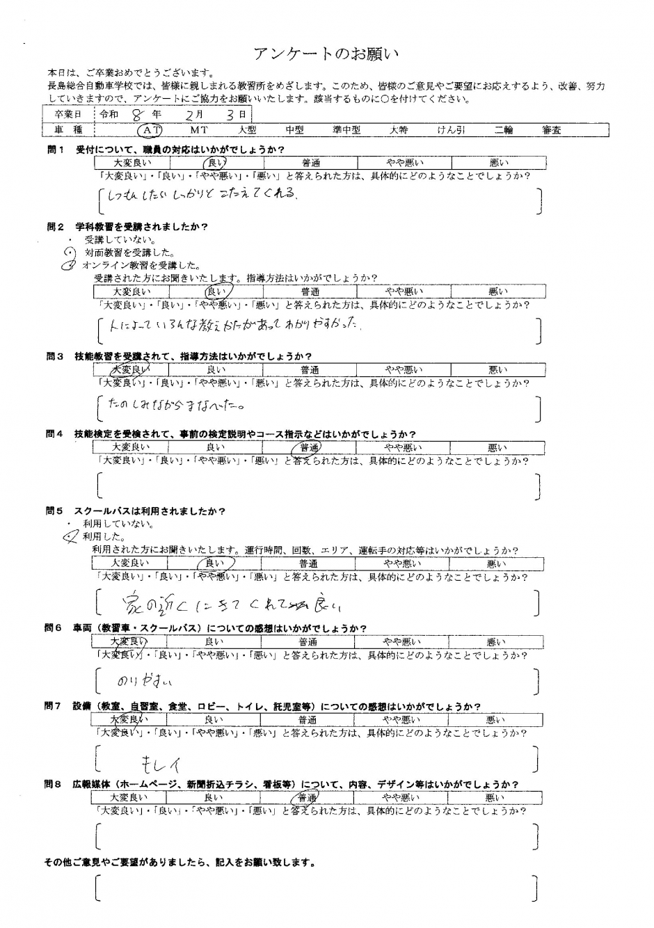 卒業生アンケート